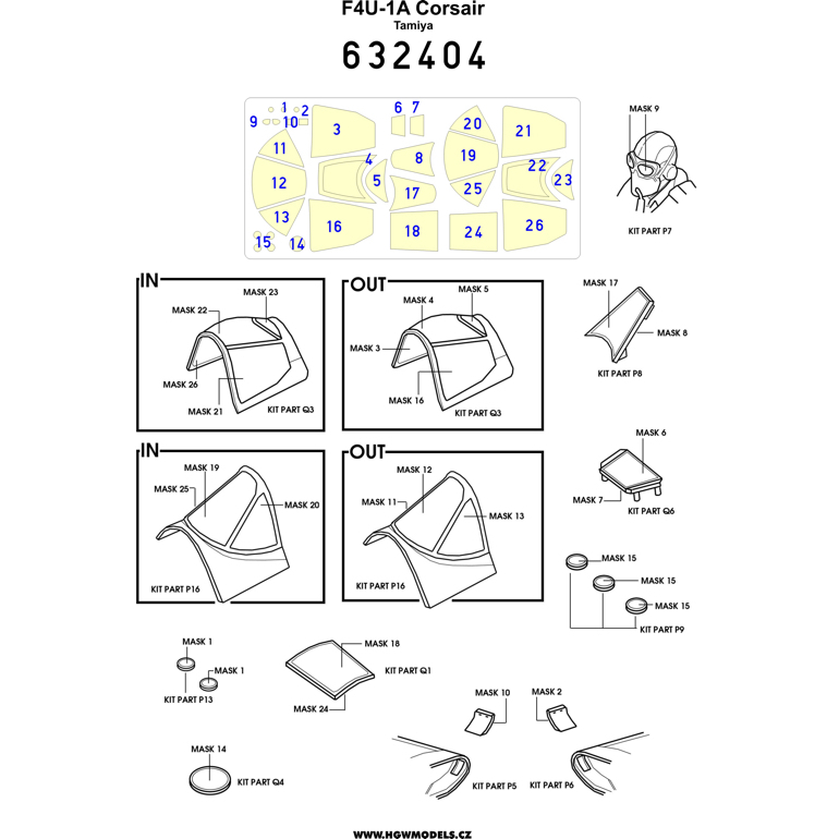HGW - 1/32 Vought F4U-1A Corsair inside and out canopy paint mask (for Tamiya kits)
