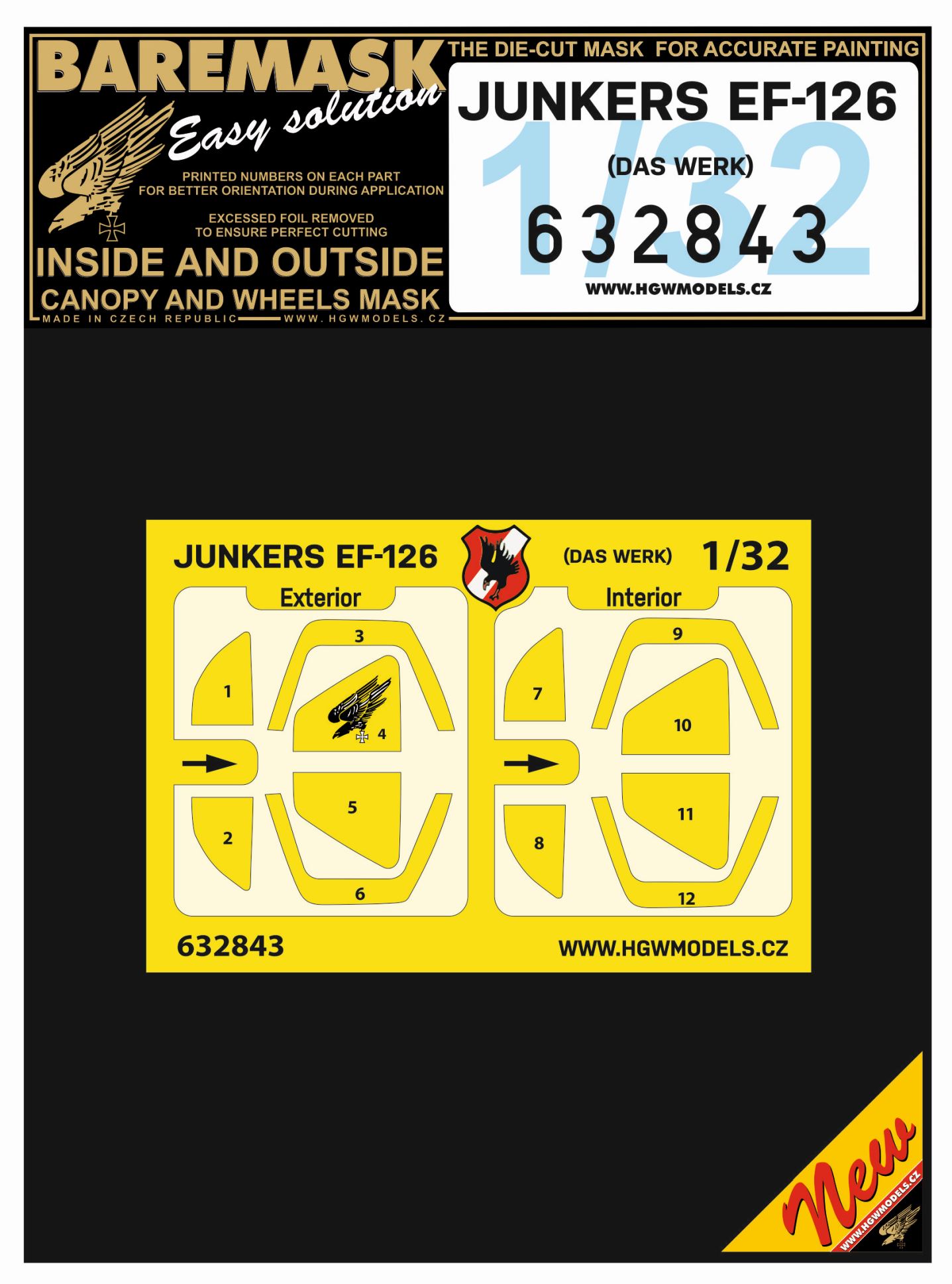 HGW - 1/32 Junkers EF-126 canopy mask (inside & outside) (for Das Werk kits)D