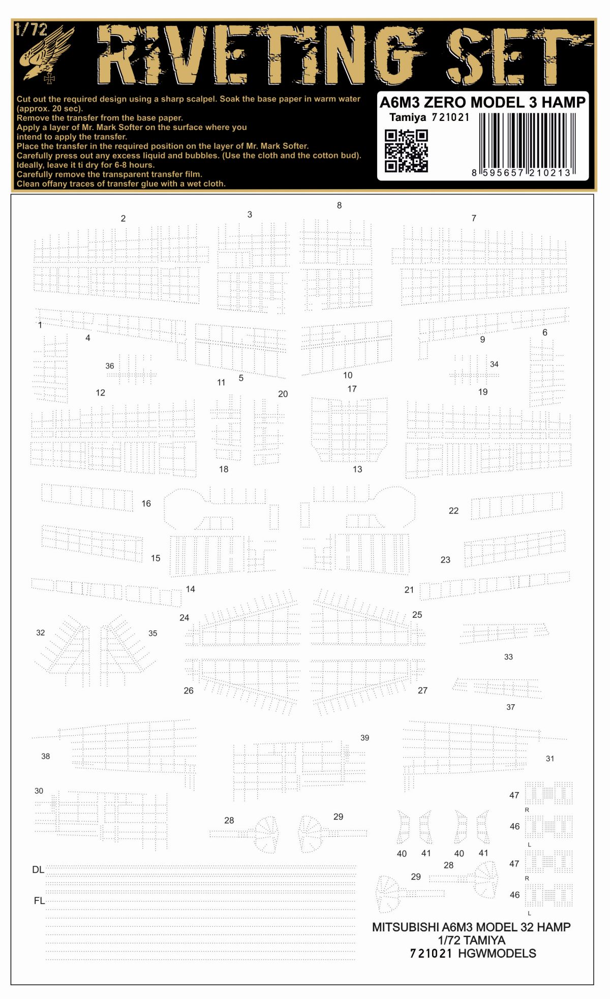 HGW - 1/72 A6M3 Zero model 3 HAMP RIVETING SET (TAM) decal