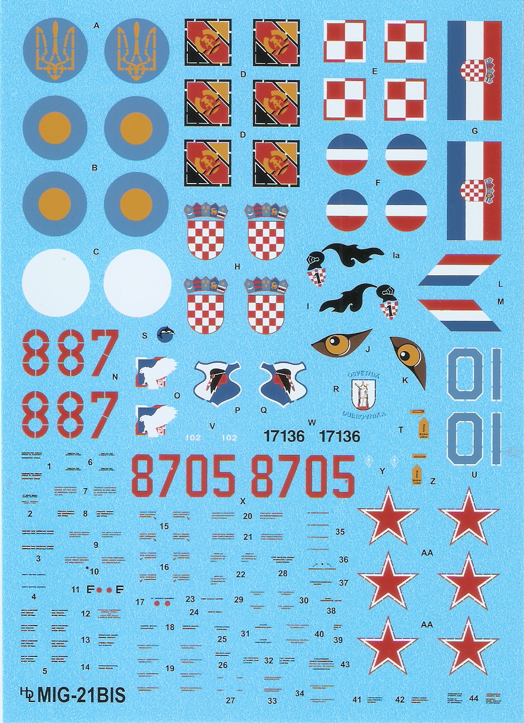 Hi Decal - 1/48 RE-PRINTED!!! Mikoyan MiG-21 bis Fishbed L/N 6 Soviet Air Force, Ukrainian Air Force, Polish Navy, Yugoslavian Air Force, Croatian Air Force, East German Air Force