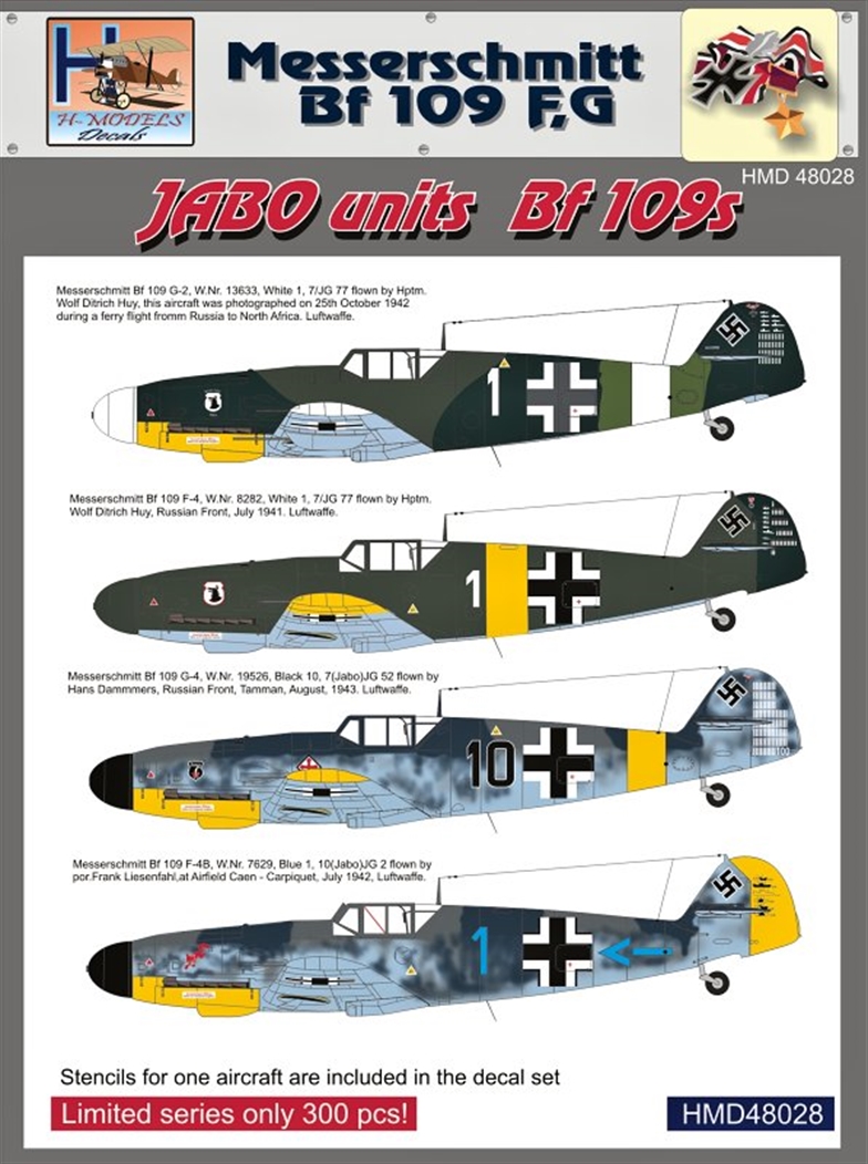 HM DECALS - 1/48 Decals Bf 109F,G JABO units (incl. stencils)