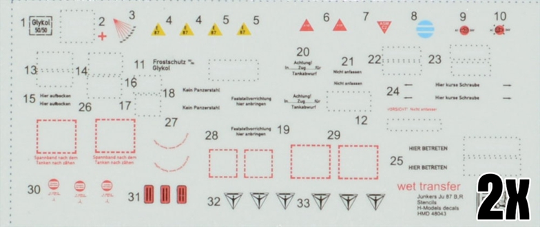 H-Model Decals - 1/48 Junkers Ju 87B/R 'Stuka' Stencils (sets for 2 kits)
