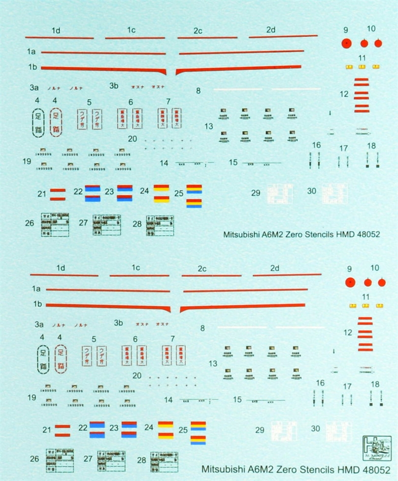HM DECALS - 1/48 Stencils Mitsubishi A6M2 Zero