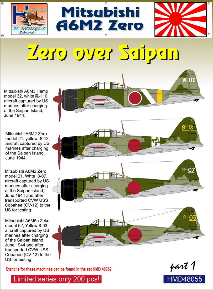 HM DECALS - 1/48 Decals Mitsubishi A6M2 Zero over Saipan