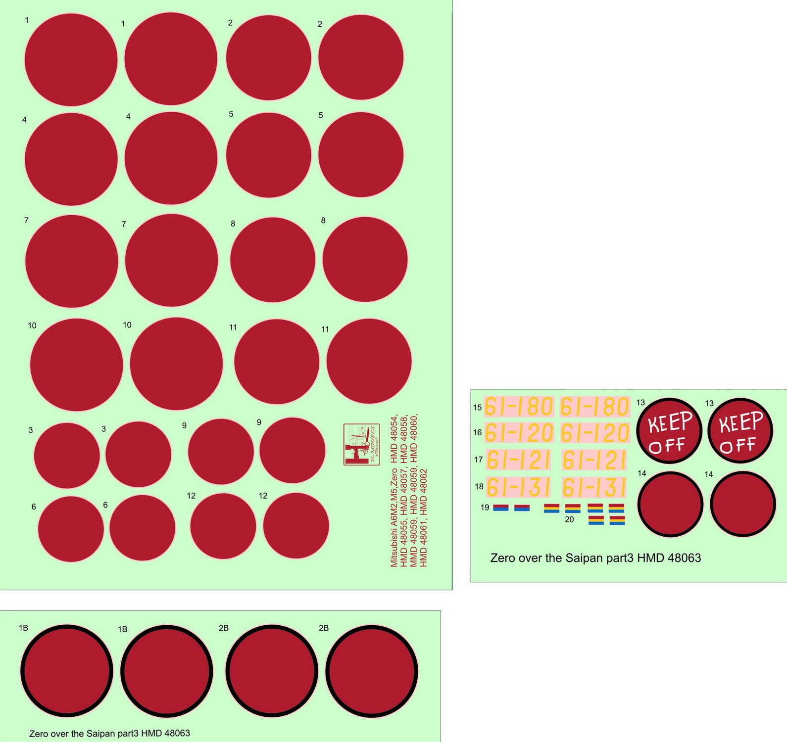 HM DECALS - 1/48 Decals Mitsubishi A6M5 Zeke over Saipan Pt.2
