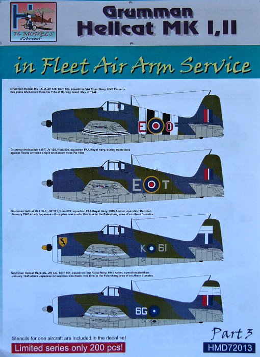 HM DECALS - 1/72 Decals Grumman Hellcat Mk I,II - Part 3