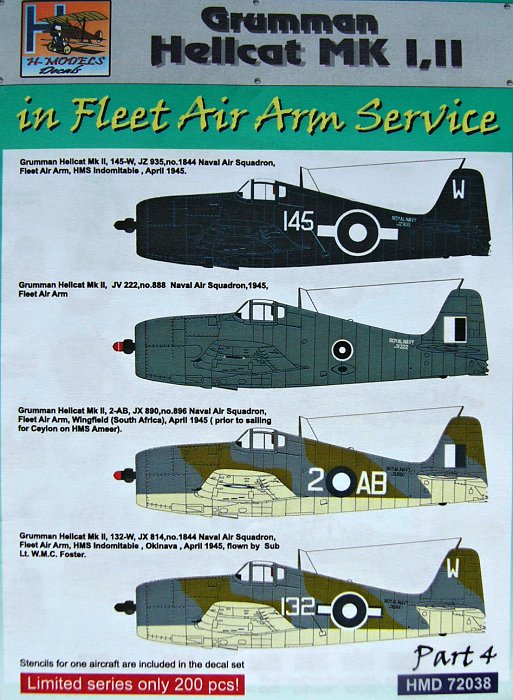 HM DECALS - 1/72 Decals Hellcat Mk.I/II Fleet Air Arm Service