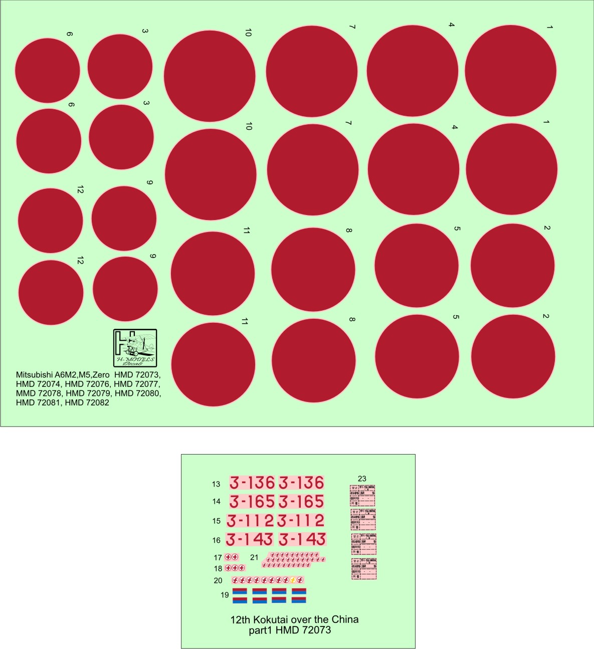 HM DECALS - 1/72 Decals Mits.A6M2 Zero 12th Kokutai over China