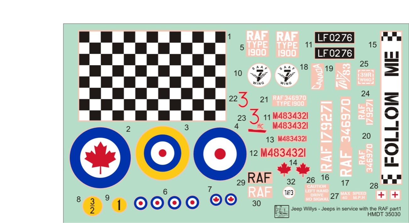 HM DECALS - 1/35 Decals J.Willys MB/Ford GPW in RAF service 1