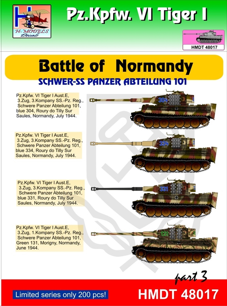H-Model Decals - 1/48 Pz.Kpfw.VI Ausf.E Tiger I Battle of Normandy (Schwere SS-Pz. Abt.101), Pt.3