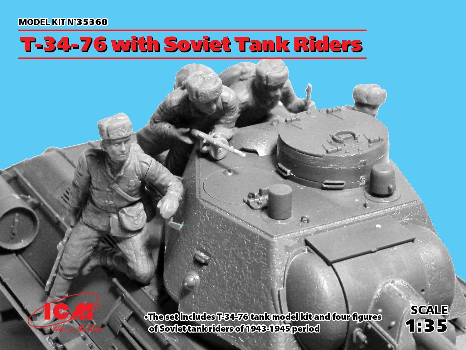 ICM - 1/35 Soviet T-34/76 with 4 x Soviet Tank Rider figures
