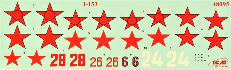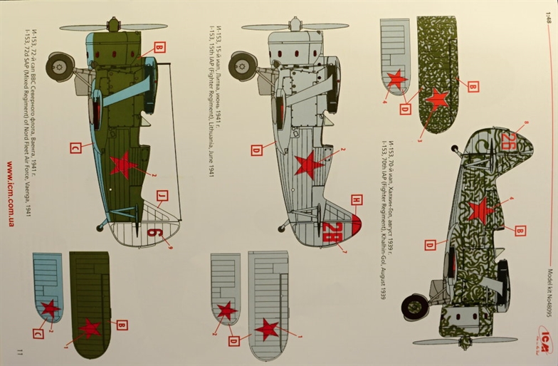 ICM - 1/48 Polikarpov I-153 WWII Soviet Biplane Fighter. I Highly detailed chassis and cockpit interior. Bombs and RS-82 rockets are included. 4 versions decal sheet is included