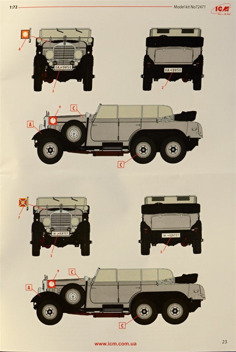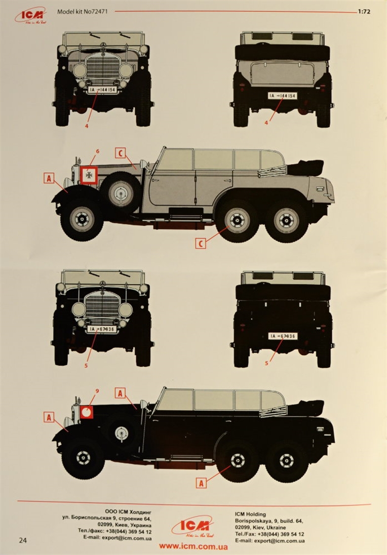 ICM - 1/72 Typ G4 (1935 production), WWII German Staff Car (100 new molds) snap fit/no glue. &bullet, Highly detailed chassis, engine and interior. A 4 versions decal sheet is included
