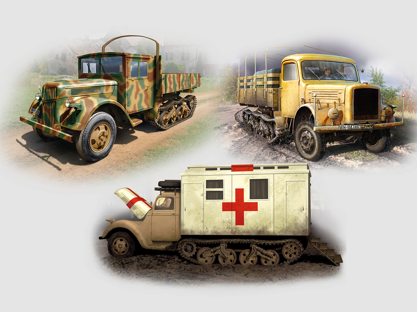ICM - 1/35 Wehrmacht Maultiers, Sd.Kfz.3b, V3000S/SSM with Shelter, Khd S3000/SS