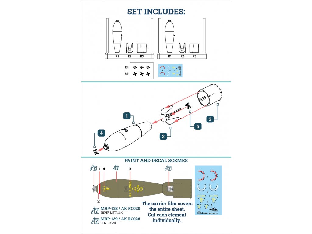 1/32 Weapon set - 250lb bombs de Havilland DH-100 Vampire Mk.3/Mk.5 (designed be used with Infinity Models kits)