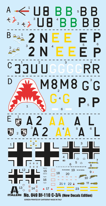 Italeri - 1/72 Messerschmitt Bf-110C-3/C-4 Zerstorer New Decals Edition Super Decals For 5 Versions Color Istructions SHEET