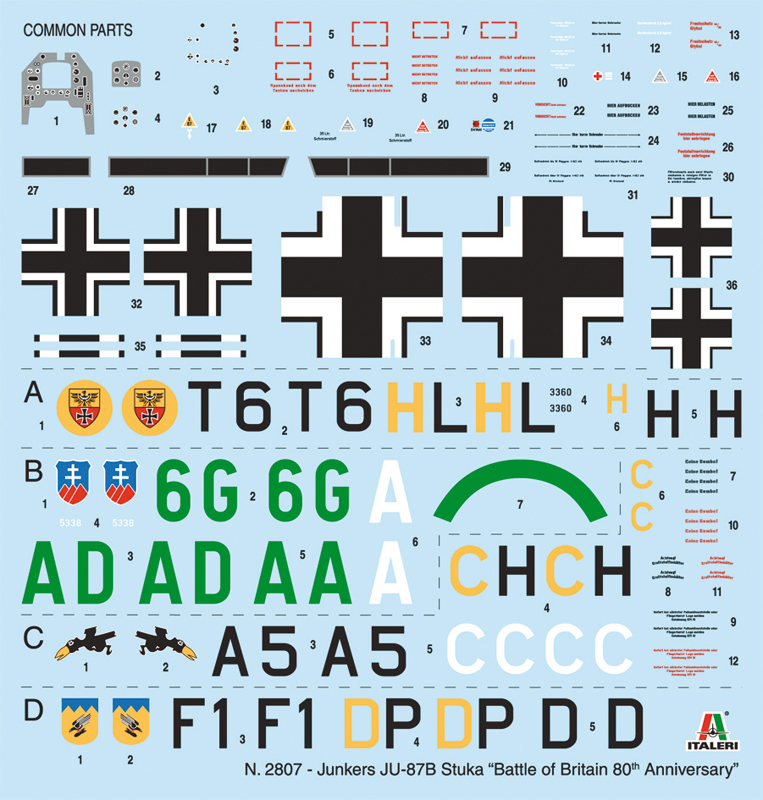 Italeri - 1/48 Junkers Ju-87B 'Stuka' 80th Anniversary of the Battle of Britain. Super Decals Sheet For 4 Versions Photo Etched Fret Color Instructions SHEET
