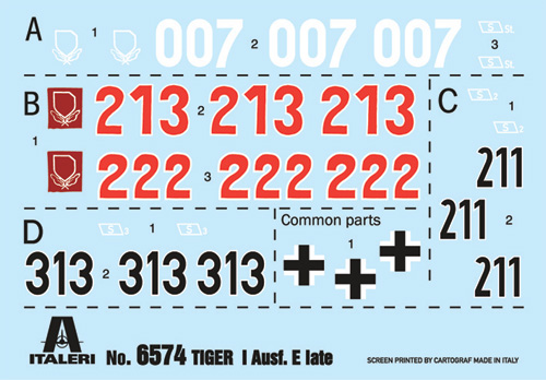 Italeri - 1/35 Pz.Kpfw.VI Tiger I Ausf.E late production. LINK-AND-LENGTH Tracks Or Gluable Rubber Trucks Decals Sheet For 4 Versions Color Instruction SHEET