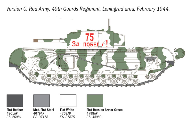 Italeri - 1/72 Churchill Mk.III Gluable Rubber Tracks Color Instructions SHEET