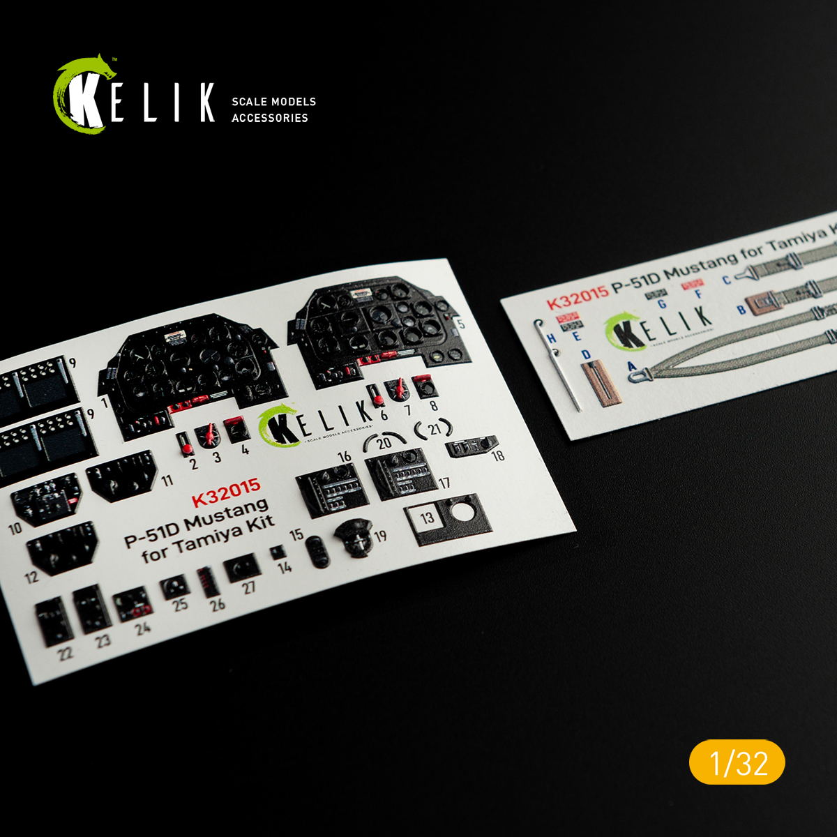 Kelik 3D Decals - 1/32 North-American P-51D Mustang Interior 3D-Decal for Tamiya