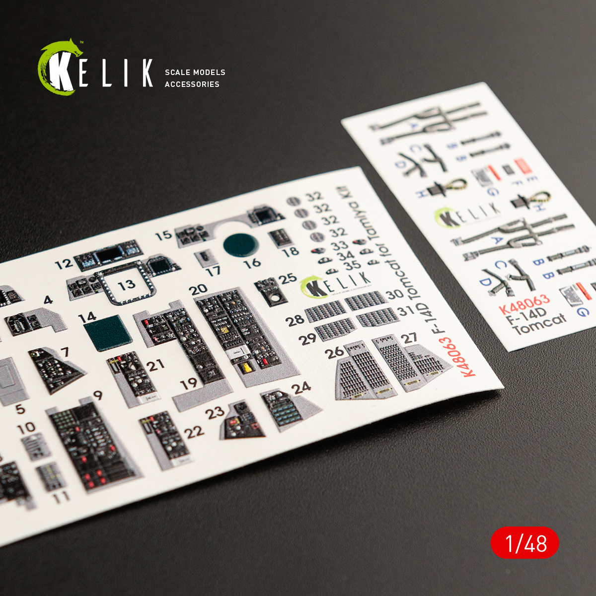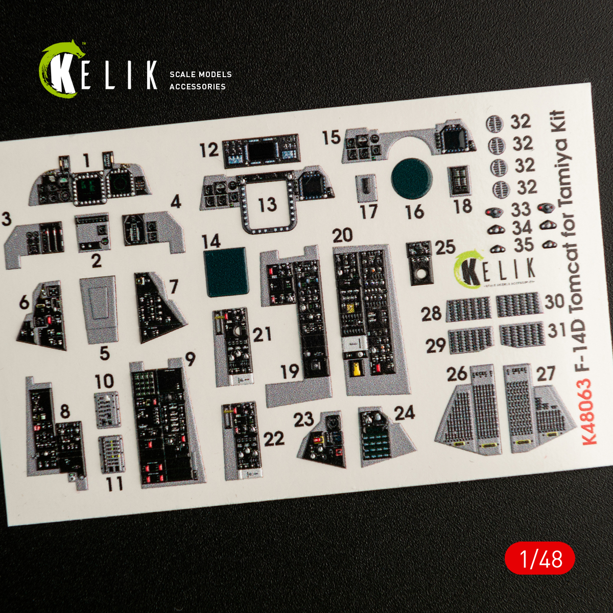 Kelik 3D Decals - 1/48 Grumman F-14D Tomcat interior 3D decals for Tamiya kits