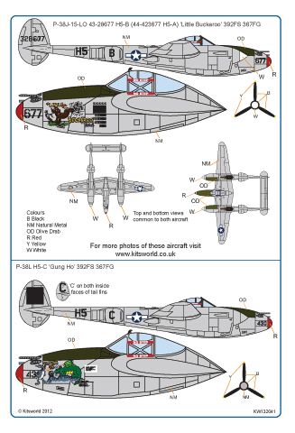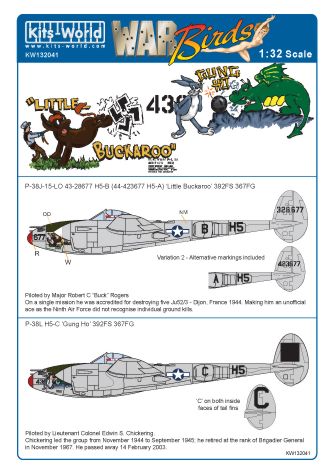 Kits-World - 1/32 Lockheed P-38J-15-LO Lightning 43-28677 H5-B 'Little Buckaroo' 392FS 367FG P-38L H5-C 'Gung Ho' 392FS 367FG