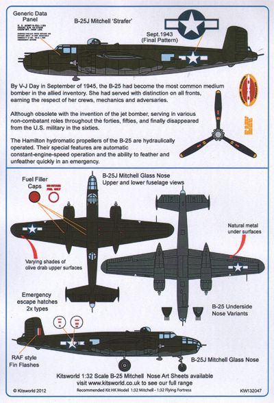 Kits-World - 1/32 North-American B-25J Mitchell General Stencilling -Stars & Bars suitable for Medium Bombers B-17 Flying Fortress & B-26 Marauders P-61, suited for the Hk Model kits.