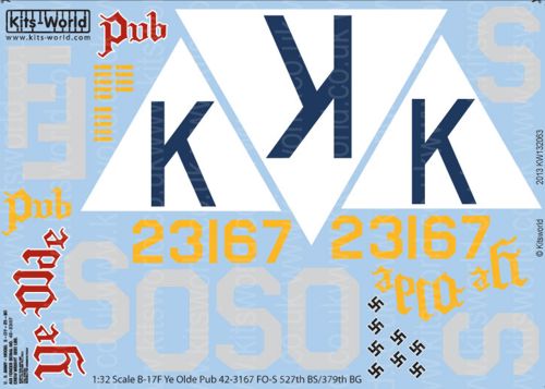 Kits-World - 1/32 B-17F 42-3167 FO-S 'K' 'Ye Olde Pub' 527th BS/379th BG Recommended HK Model KIT