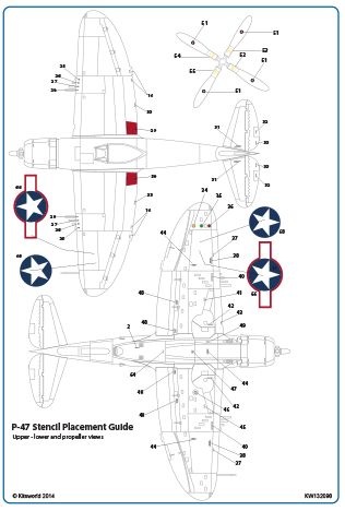 Kits-World - 1/32 Scale Republic P-47D Thunderbolts Stars and Bars, Usaaf Roundels and Stencilling Information