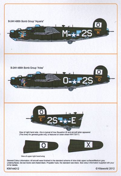 Kits-World - 1/144 Consolidated B-24H Liberator Phil Brinkman's Zodiacs Virgo, Sagittarius, Aquaria, Aries, 834th Bs 486th Bg 1/144 Scale Set 2