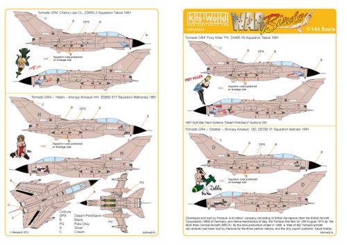 Kits-World - 1/144 Panavia Tornado GR.1 Desert Storm 1991 (4) ZA465/FK Foxy Killer 16 Sqn Tabuk, ZD790/D Debbie/Snoopy Airways, 31 Sqn Bahrain, ZD850/CL Cherry Lips,, 2 Sqn Tabuk, ZD892/H Helen/Snoopy Airways 617 Sqn Maharraq,