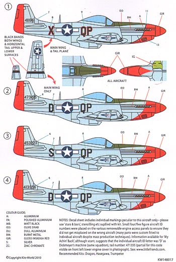 Kits-World - 1/48 North-American P-51D Mustang 334th FS,4th Fg (4) 411661 QP-X Lt.Col Jack Oberhamsly Iron Ass , 473155 QP-D My Achin Back , 453223 QP-S Lt Arthur Bowers Sweet Arlene , 413056 QP-D Lt Bob Dickmeyer Jan . Individual aircraft markings only.
