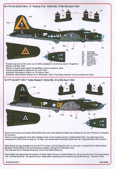 Kits-World - 1/48 B-17 G 42-32024 WA-L 'K' 'Swamp Fire' 379th BG, 524th BS - B-17F 42-5077 OR-T 'Delta Rebel II' 323rd BS, 91st BG April 1944
