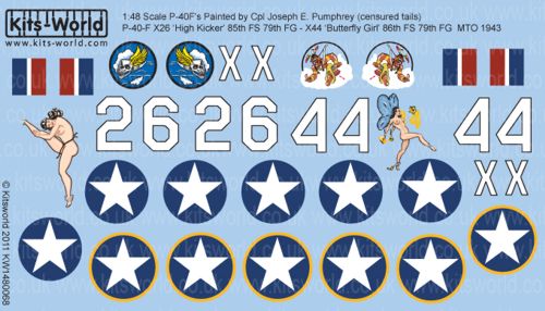 Kits-World - 1/48 Curtiss P-40's Painted by Cpl Joseph E. Pumphrey (censured tails) P-40-F X26 'High Kicker' 85th Fs 79th Fg X44 'Butterfly Girl' 86th Fs 79th Fg Mto 1943