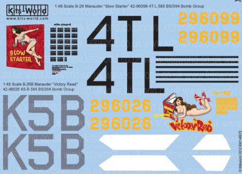 Kits-World - 1/48 Marauders B-26 "Slow Starter" 42-96099 4T-L 585 BS/394 BG - B-26B "Victory Read" 42-96026 K5-B 584 BS/394 BG