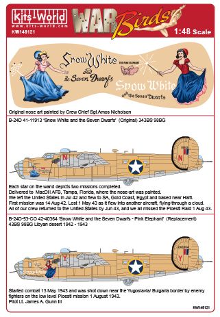Kits-World - 1/48 Consolidated B-24D 343 BS 98 BG - CO 41-11913/42-40364 'Snow White and the Seven Dwarfs' ' - versions I & II