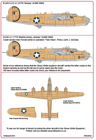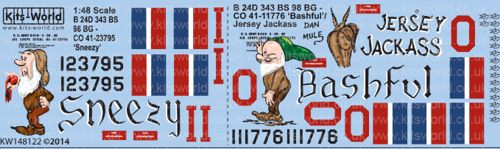 Kits-World - 1/48 Scale Consolidated B-24D 343 Bs 98 Bg Co 41-23795 'Sneezy' B 24D 343 Bs 98 Bg Co 41-11776 'Bashful/Jersey Jackass'