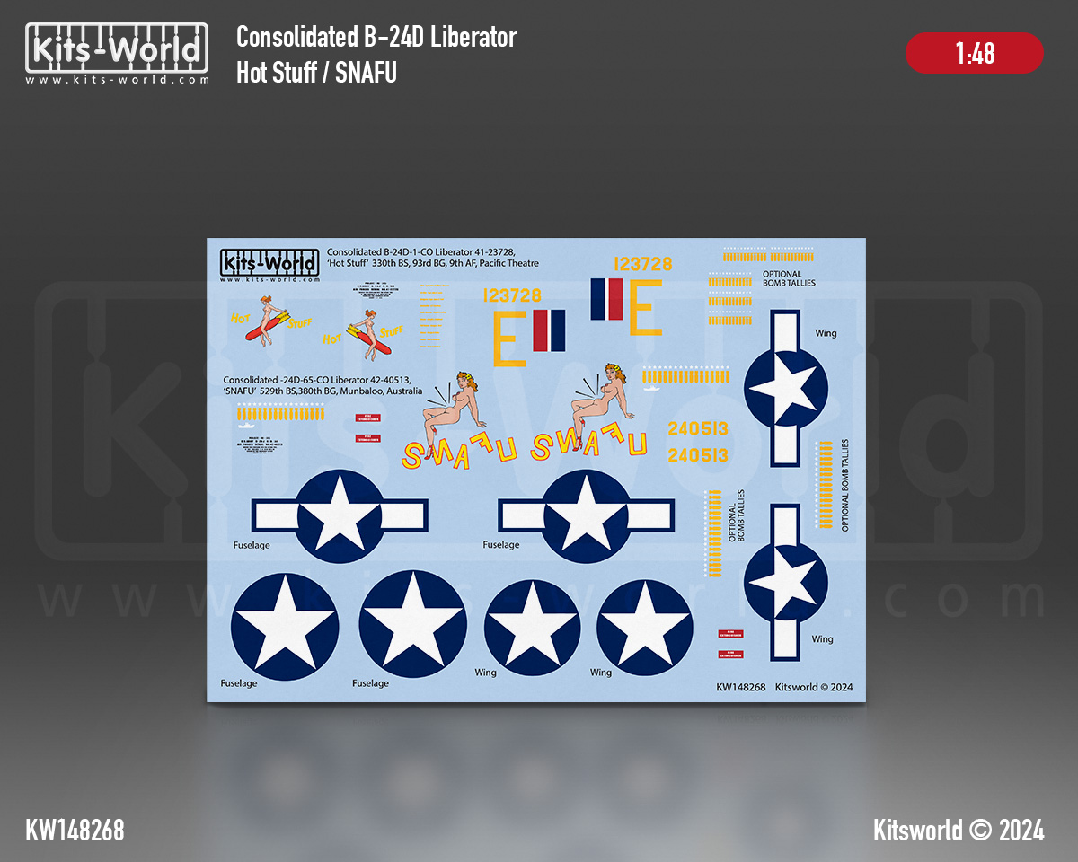 Kits-World - 1/48 Consolidated B-24D-1-CO Liberator 41-23728, 'Hot Stuff' 330th BS, 93rd BG, 9th AF, Pacific Theatre.
