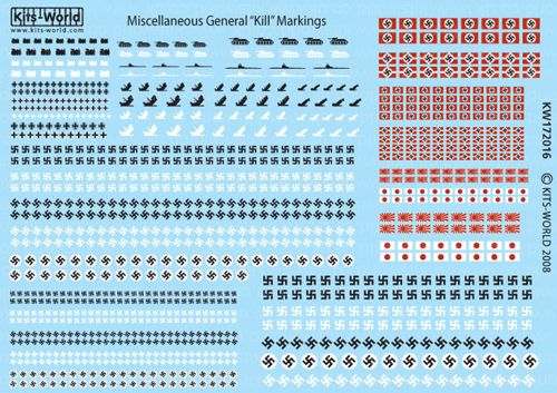 Kits-World - 1/32, 1/48, 1/72 Scale Allied Kill Markings including several styles of Swastikas and Japanese Hinomarus suitable for use on Supermarine Spitfire, Hawker Hurricanes, Hawker Typhoon, Republic Thunderbolts, North-American Mustangs, Grumman Hellcats etc.