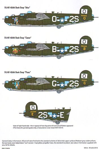 Kits-World - 1/72 Consolidated B-24 Liberator Numbering and Lettering Id set (Camouflage Finish)