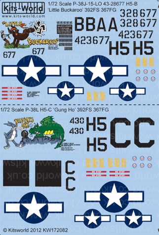 Kits-World - 1/72 Lockheed P-38J-15-LO Lightning 43-28677 H5-B 'Little Buckaroo' 392FS 367FG P-38L H5-C 'Gung Ho' 392FS 367FG