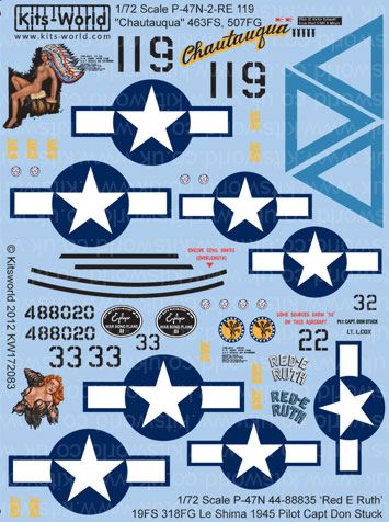 Kits-World - 1/72 Republic P-47N-2-RE 119 Thunderbolt 'Chatauqua'463FS 507FG P-47N 44-88835 'Red E Ruth' 19FS 318FG Le Shima 1945 Pilot Capt Don Stuck