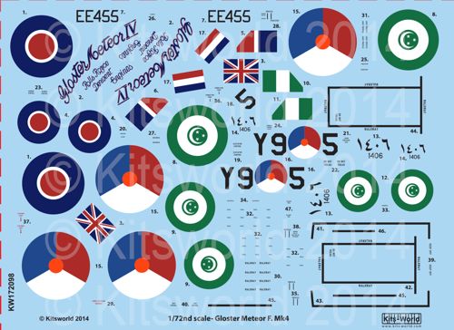 Kits-World - 1/72 Scale Gloster Meteor F.IV- EE455, known as 'The Yellow Peril' or 'Forever Amber', flown by Gloster chief test pilot, Eric Greenwood to beat the air speed record, November 1945.