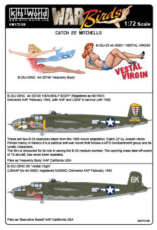 Kits-World - 1/72 Scale Catch 22 Mitchells North-American B-25J-25NC 44-30748 6H 'Heavenly Body' (N8195H) B-25J-25 'VESTAL VIRGIN'44-30801 6K (N3699C)