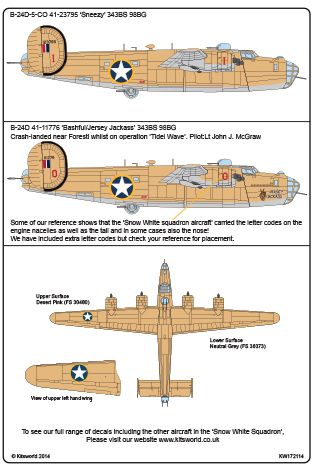 Kits-World - 1/72 Scale Consolidated B-24D 343 Bs 98 Bg Co 41-23795 'Sneezy' Consolidated B-24D 343 Bs 98 Bg Co 41-11776 'Bashful/Jersey Jackass'
