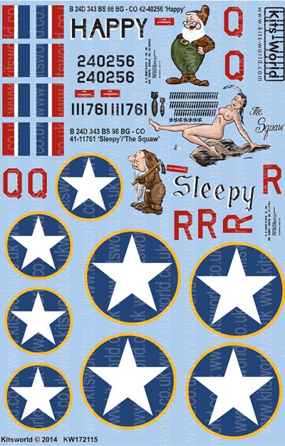 Kits-World - 1/72 Scale Consolidated B-24D 343 Bs 98 Bg Co 42-40256 'Happy' Consolidated B-24D 343 Bs 98 Bg Co 41-11761 'Sleepy'/'The Squaw'
