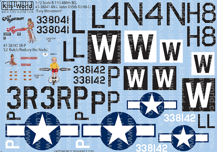 Kits-World - 1/72 Boeing B-17G Flying Fortress 486th BG, 43-38041 4N-L (later 835th Bs H8-L) Easy Movement .