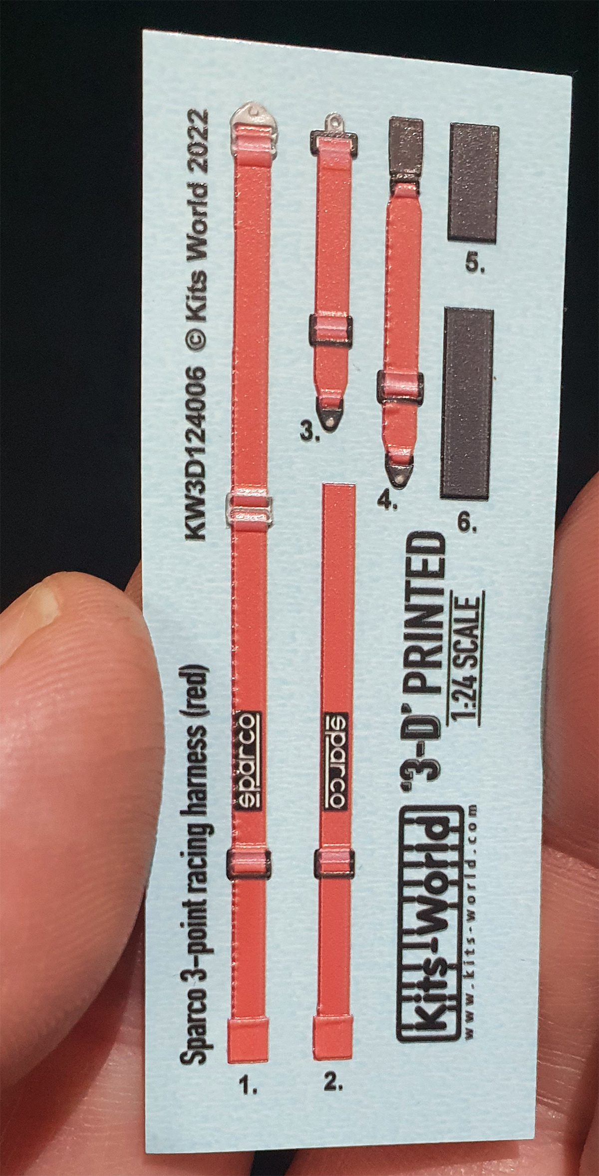 Kits-World - 1/24 'Sparco' Racing Harness 'Red'. Kitsworld 3D Full Colour