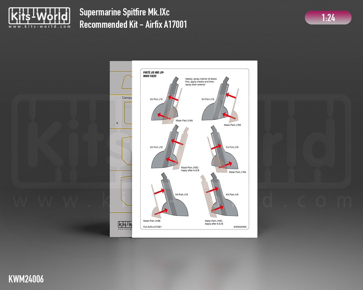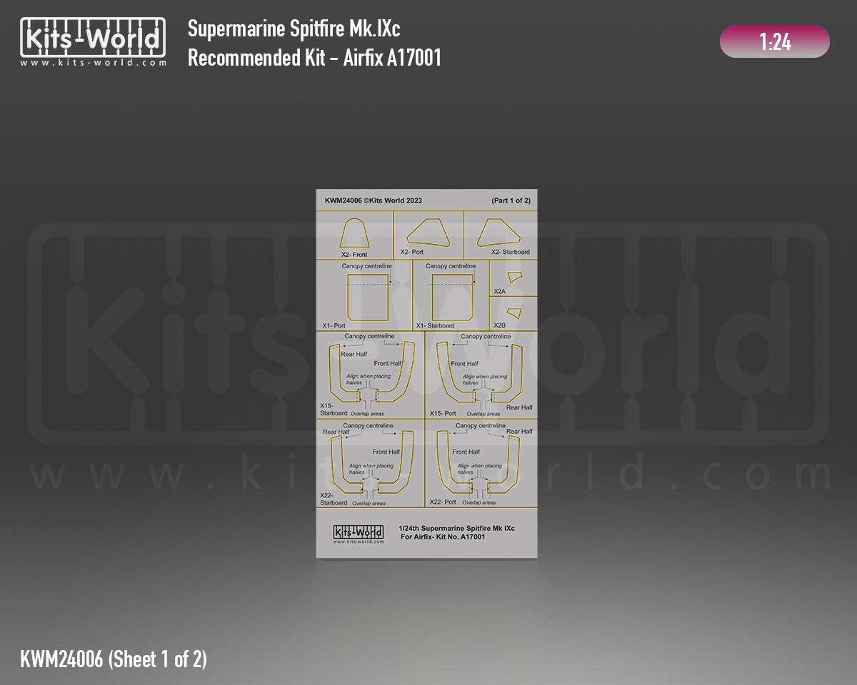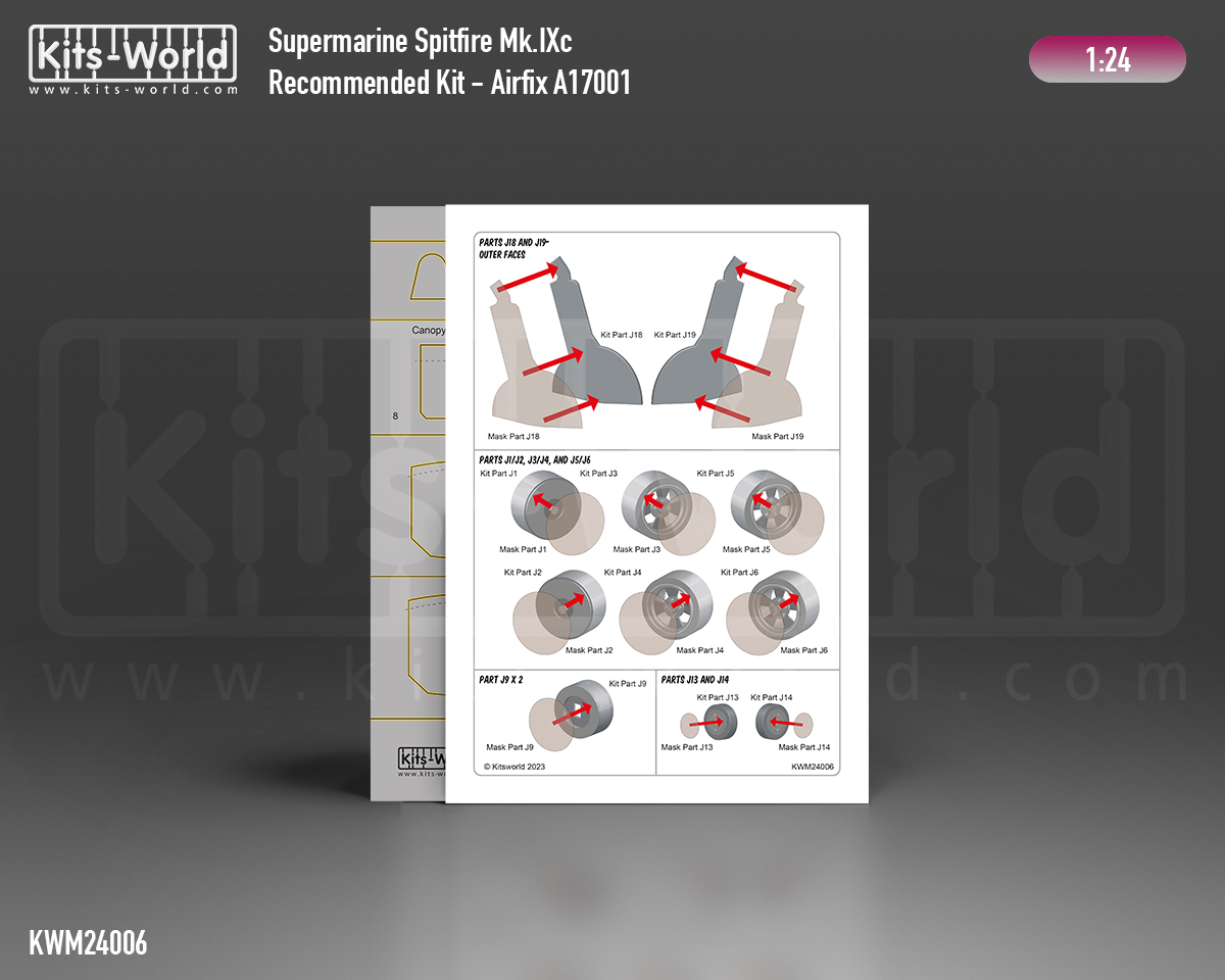 Kits-World - 1/24 Supermarine Spitfire Mk.IXc Canopy and Wheel Mask (for Airfix kits)