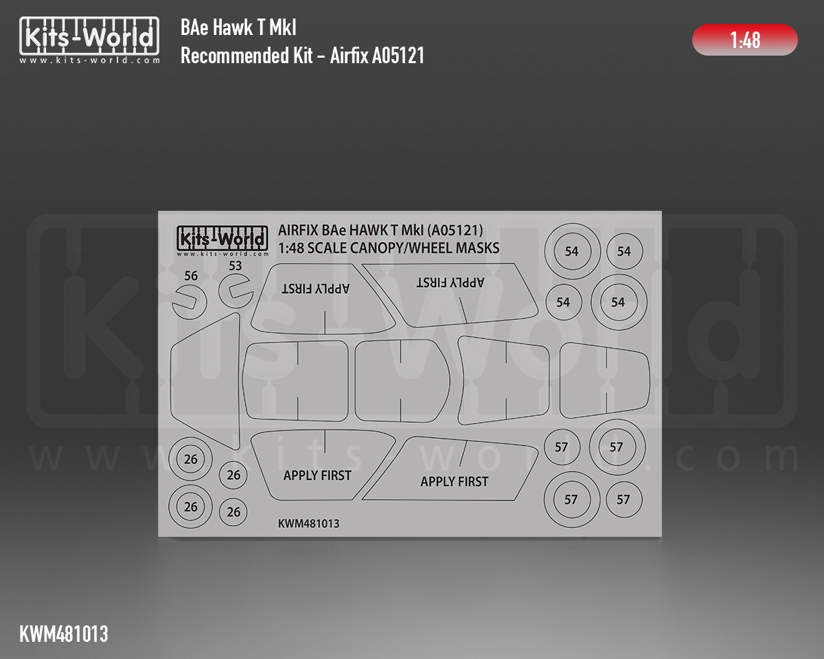 Kits-World - 1/48 Bae Hawk T Mk.I wheels and canopy paint mask outside only (for Airfix AX05121 kits)